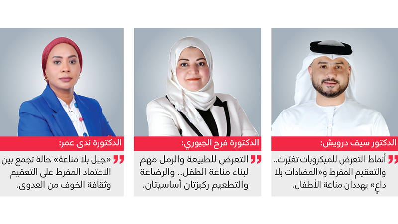وقالو لـ«الإمارات اليوم» إن ظاهرة «جيل بلا مناعة» هي حالة مركبة ناتجة عن الإفراط في استخدام المعقمات والأدوية، إلى جانب ثقافة الخوف الزائد من العدوى، التي تتأثر إلى حد كبير بمحتوى وسائل التواصل الاجتماعي، ما ينعكس على أساليب تربية الطفل، ويضعف قدرته على التكيف.