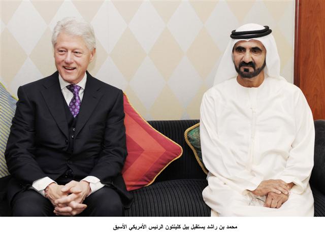 استقبل صاحب السمو الشيخ محمد بن راشد آل مكتوم، نائب رئيس الدولة رئيس مجلس الوزراء حاكم دبي رعاه الله، في برج العرب بدبي عصر اليوم السيد بيل كلينتون الرئيس الأمريكي الأسبق مندوب الأمم المتحدة الخاص في هاييتي.