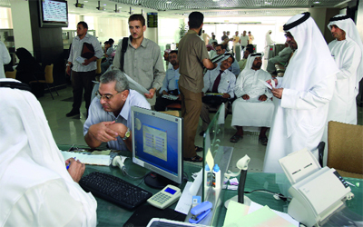 مراجعون ينجزون معاملات في أحد مكاتب الطباعة. الإمارات اليوم