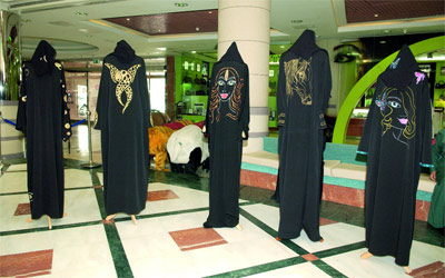 مجموعة من العباءات من تصميم وحياكة النزيلات. من المصدر
