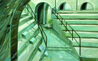 لوحة للفنان عبدالرحمن زينل رسمها في عام .1992 وكان الفنان تخرج في كلية الفنون الجميلة في القاهرة عام ،1978 كما درس في كلية أدنبره للفنون الجميلة. المصدر: وزارة الثقافة والشباب وتنمية المجتمع