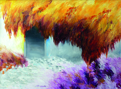 تحتفي الفنانة الإماراتية فاطمة عبدالباقي باللون. أعمالها تذخر بتكوينات لونية متنوعة قوية ومؤثرة. تستقي فاطمة عوالمها من التراث والبيئة المحلية وتحلق بها في فضاءات سحرية مشرقة. المصدر: وزارة الثقافة والشباب وتنمية المجتمع