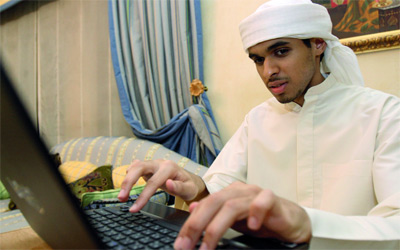 عبدالله يتعامل مع الأجهزة الإلكترونية كافة التي يستخدمها الأصحاء. تصوير: زافيير ويلسون