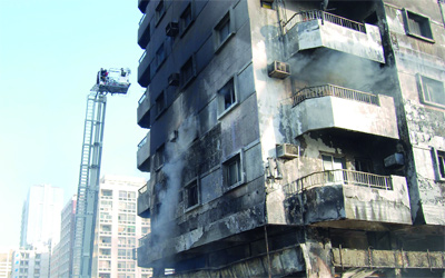البناية وآثار الحريق واضحة على جدرانها. من المصدر