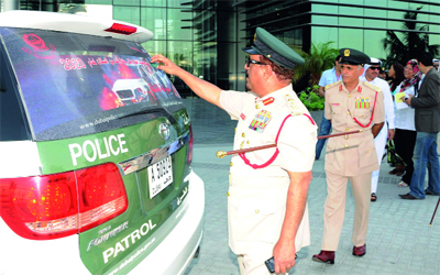 خلفان يتابع لصق شعار الحملة على دوريات الشرطة كافة. من المصدر