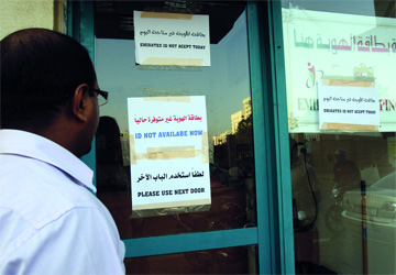 ويتفق معه أبورامي قائلاً إنه طبع الاقامة على جواز سفره منذ أسبوع، وبعدها راجع نحو 10 مكاتب طباعة في الإمارة التي يقيم فيها، وفي كل مكتب يتم إبلاغه بأن هناك عطلاً في النظام، متسائلاً «ما مسؤوليته إذ لم يتمكن من التسجيل في حال استمر هذا العطل حتى نهاية الشهر؟».