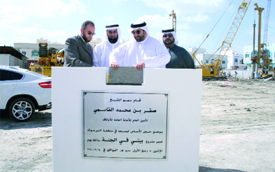 وضع سمو الشيخ صقر بن محمد القاسمي، الأمين العام للأمانة العامة للأوقاف في الشارقة، حجر الأساس لمسجد اليرموك، الذي يعد إحدى ثمار مشروع «بيتي في الجنة». وقال مدير إدارة الأملاك والاستثمار الوقفي، حسن صعب، إن مسجد اليرموك يعد ثالثة ثمار «بيتي في الجنة»، إذ يبنى من تبرعات أهل الخير في منطقة اليرموك، ويعزز هذا المشروع قيم التكافل الاجتماعي، وحب العمل الخيري في نفوس أفراد المجتمع. وتبلغ تكلفة المشروع نحو ستة ملايين درهم، ويقام على مساحة 2818 متراً مربعاً، ويتسع لنحو 900 مصلٍ، ويتكون من مصلى للرجال وآخر للنساء في الطابق العلوي، إضافة إلى سكن للإمام وسكن للمؤذن وثلاث محال تجارية.