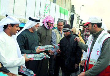 واصلت مؤسسة محمد بن راشد آل مكتوم للأعمال الخيرية والإنسانية أعمالها الإغاثية في توزيع المساعدات الغذائية والطبية على أكثر من 35 ألفا من النازحين العالقين على الحدود المصرية ـ الليبية، وذلك في إطار جهودها التي بدأتها منذ أيام لإغاثة آلاف العالقين على الحدود الليبية، إثر الاضطرابات الدموية التي شهدتها البلاد خلال الأسبوعين الماضيين.