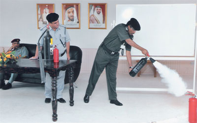 نظمت إدارة المنشآت الإصلاحية والعقابية في شرطة أبوظبي في مقرها، بالتعاون مع الدفاع المدني، تدريباً عملياً للعاملين في المنشأة بعنوان «الدفاع المدني والسلامة في العمل».