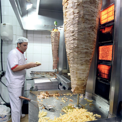 تحضير الشاورما يتعين أن يتمّ في بيئة شبه معزولة غير معرضة للعوامل الخارجية. تصوير: دينيس مالاري