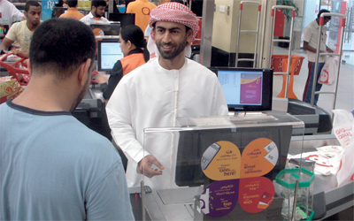 بن حيدر خلال عمله «كاشير». الإمارات اليوم