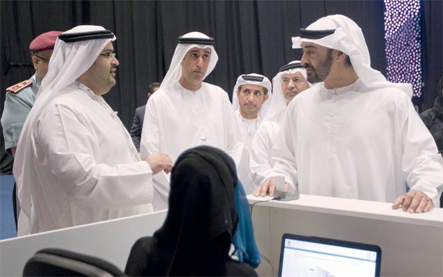 محمد بن زايد يتفقد تجهيزات مقر المركز الانتخابي في مركز أبوظبـي للمعارض. وام