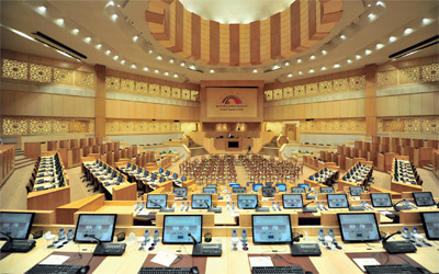 قاعة المجلس تستخدم أحدث التقنيات لدعم الأعضاء خلال الجلسة. من المصدر