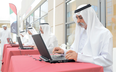 نهيان بن مبارك خلال توقيعه على الحملة. من المصدر