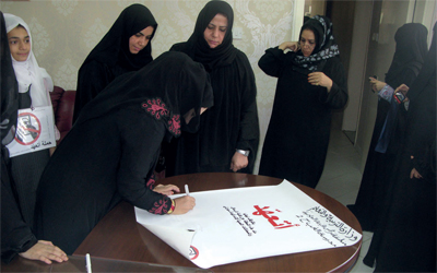 وقع أعضاء هيئة التدريس وطالبات مدرسة الغب في رأس الخيمة على حملة «أتعهد» التي اطلقتها «الإمارات اليوم»، للحد من استخدام الهاتف المحمول أثناء قيادة المركبات.