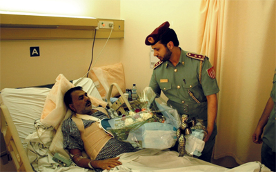 دعا مدير فرع العلاقات العامة في قسم مرور العين، الملازم أول حمدان حسن بن ذيبان، قائدي المركبات إلى الانتباه عند السير في المناطق المكتظه بعبور المشاة، والانتباه والتركيز في القيادة، والالتزام بقوانين السير والمرور، وتجنب استخدام الهاتف أثناء القيادة. جاء ذلك خلال زيارة وفد من فرع العلاقات العامة في قسم مرور العين مستشفى توام، إذ قدم التهاني بمناسبة عيد الأضحى المبارك للمرضى والمصابين جراء الحوادث المرورية. وقال بن ذيبان إن هذه الزيارة تجسيد لاستراتيجية القيادة العامة لشرطة أبوظبي في نشر الوعي بين جميع أفراد المجتمع بكل فئاته العمرية، ومد جسور التعاون وتوثيق العلاقة بين «الشرطة والمجتمع»، لافتاً إلى أنها تأتي انطلاقاً من الدور الإنساني الذي تهتم به مرور العين لمشاركة المرضى ومصابي الحوادث المرورية فرحتهم بالعيد.