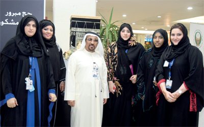 تقيم 13 مواطنة «بصورة شبه دائمة» في صالات مطار دبي الدولي، لتقديم المساعدة للحجاج العائدين، وتيسير إجراءات وصولهم، وخدمة النساء العائدات من أداء الفريضة، خصوصاً كبيرات السن، والمريضات، وذوي الإعاقة.