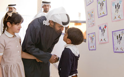 فوجئ الطلاب والمعلمون في «مدرسة المنى» الابتدائية الخاصة بأبوظبي، التابعة لأكاديمية الدار، بالفريق أول سموّ الشيخ محمد بن زايد آل نهيان، ولي عهد أبوظبي نائب القائد الأعلى للقوات المسلحة، يزور المدرسة، ويتجوّل بين صفوفها، محققاً رغبة طالبة يتيمة (تسعة أعوام)، مصابة بمرض التوحّد، إذ كانت الطالبة قد دعت سموّه لزيارتها، من خلال نشرة علوم الدار التي عرضت تقريراً أول من أمس.