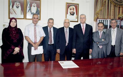 الهيئة التدريسية للجامعة خلال توقيع وثيقة «أتعهد». من المصدر