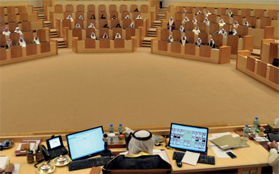 ويتضمن جدول أعمال الجلسة الخامسة، التي تعقد بمقر المجلس في أبوظبي برئاسة محمد أحمد المر، توجيه أسبعة أسئلة من أعضاء المجلس إلى خمسة وزراء، إذ يوجه العضو عبدالعزيز عبدالله الزعابي، سؤالاً حول إنشاء 40 ألف وحدة سكنية للمواطنين في مختلف إمارات الدولة، إلى الشيخ حمدان بن مبارك آل نهيان وزير الأشغال العامة.