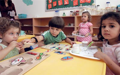 وجود الطفل في الحضانة يحميه ويكسبه مهارات عدة. تصوير: دينيس مالاري