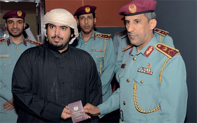 اللواء ناصر المنهالي يسلّم «خلاصة القيد» إلى أحد المواطنين الجدد. من المصدر