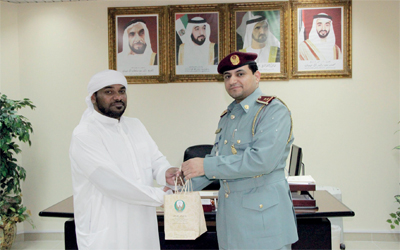 والتقى ضابط مكتب التنسيق والمتابعة في الإدارة، الملازم أول أحمد شامس المنهالي، مراجعاً من ذوي الإعاقة، وقدم له شرحاً مبسطاً عن الخدمات التي تقدمها الإدارة لهذه الفئة من المراجعين.
