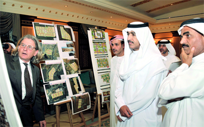 أعضاء في اللجنة خلال اطلاعهم على تصاميم المشروعات. وام