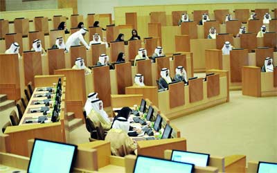 أعضاء المجلس خلال مناقشة موضوع زيادة نسبة العنوسة. وام