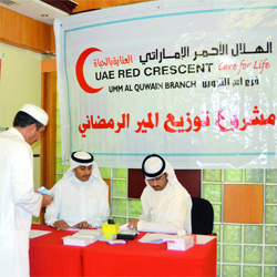 وزعت هيئة الهلال الأحمر بطاقات المير الرمضاني على الأسر المتعففة في المنطقة الغربية وأم القيوين لتوفير احتياجاتها من المواد التموينية خلال شهر رمضان، وفرغت الهيئة عبر فروعها في أنحاء الدولة من إنهاء الترتيبات الخاصة بتنفيذ المشروعات الرمضانية، كإفطار الصائم وكسوة العيد وزكاة الفطر.