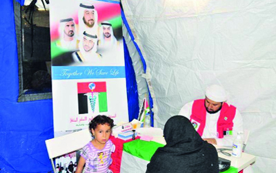 واستمع من المدير التنفيذي للمستشفى الإماراتي الميداني عن المهام الانسانية التشخيصية والعلاجية والجراحية والوقائية التي يقدمها المستشفى لما يزيد على 20 الف لاجئ في منطقة المفرق، بالتعاون مع الهلال الاحمر الاردني وبالتنسيق مع وزارة الصحة والقنوات الرسمية. ويواصل المستشفى الإماراتي الميداني استقبال المراجعين خلال أيام العيد في مخيمات اللاجئين السوريين في الاردن من المرضى الاطفال والنساء والمسنين الذين يعانون مختلف الامراض، إذ تبلغ السعة الاستيعابية له ولعياداته المختلفة نحو 500 مريض يومياً.