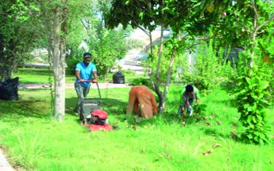 الحملة شاركت في تنظيف وتسوية الساحات الخضراء. من المصدر