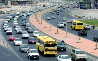 ازدحام في شارع الاتحاد من الشارقة باتجاه دبي شهده يوم أمس، اليوم الثاني لانطلاق العام الدراسي 2012 - .2013