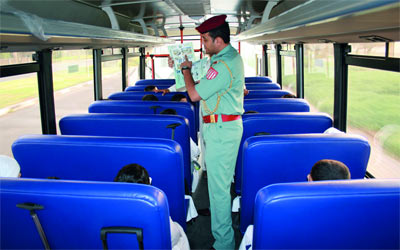 وذكر رئيس قسم مرور ودوريات العين، الرائد محسن سعيد المنصوري، أنه تم التركيز خلال المحاضرة، التي عُقدت داخل الحافلة، على توعية قائدي الحافلات والمشرفين والمشرفات بضرورة الانتباه، وإعطاء الطلاب والطالبات الفرصة الكاملة لحين صعودهم وجلوسهم على مقاعدهم قبل تحركها، والانتباه إلى الطلاب من الأعمار الصغيرة، والتأكد من نزولهم وابتعادهم عن الحافلات، وعدم وقوفهم خلفها أو بجانبها قبل التحرك، وعدم جلوس أكثر من طالب في المقعد الواحد، والتأكد من صلاحية وعمل أجهزة تكييفها.
