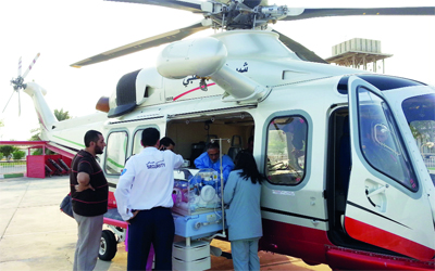 كما تولت طائرة الإسعاف الجوي نقل رضيع، مصري، عمره لم يتجاوز أربع ساعات، يعاني صعوبة في التنفس، وتدهوراً في حالته الصحية، من مستشفى دلما في المنطقة الغربية إلى مستشفى الرحبة في العاصمة لاستكمال العلاج، وتوفير الرعاية الطبية المتكاملة.
