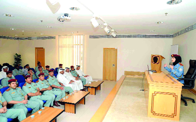 وقدمت ضابط إعلام وعلاقات عامة، الملازم أسماء أحمد الشحي، عرضاً تفصيلياً شرحت فيه معايير برنامج الإمارات للخدمة الحكومية المتميزة. وتأتي هذه الورشة بهدف رفع وعي الموظفين بأهمية الالتزام بمعايير الخدمة المتميزة، والاطلاع على محتوى ميثاق خدمة المتعاملين والعمل بما جاء به.