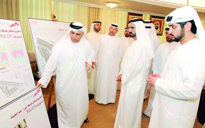 محمد بن راشد اطلع على عدد من المشروعات والمبادرات منها «بانوراما الخور» ومشروع المجمع السكني لشرطة دبي. الإمارات اليوم