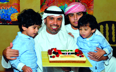 يقول سلطان: أحمد الله الذي مَنَّ عليَّ بهذه النعمة، معبراً عن سعادته التي لا توصف بالمشاركة في فرحة الوطن في الوقت نفسه الذي يحتفل بعيد ميلاد أنجاله الثلاثة.