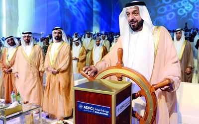 وكان صاحب السمو رئيس الدولة، دشن رسمياً «ميناء خليفة» بإدارة عجلة التحكم التي تمثل نموذجاً لدفة سفينة البوم كتب عليها «ميناء خليفة» 12/12/2012، إيذاناً بالافتتاح الرسمي للميناء.