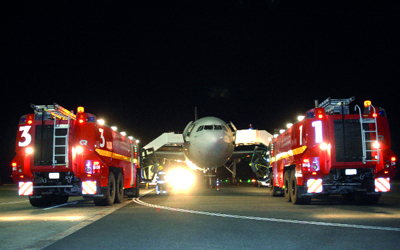 أجرى مطار الشارقة الدولي، مساء أول من أمس، تجربة لحادث طائرة من نوع ايرباص 320 هبطت اضطرارياً بعد تعرضها لانزلاق على مدرج المطار، ما أدى إلى توقفها على أرض المطار واحتراق في أحد محركاتها، وكان على متنها 162 راكباً.