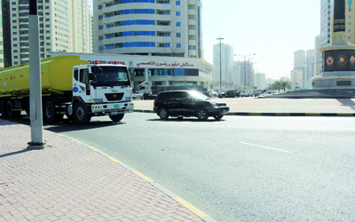 تتنقل شاحنات بشوارع مناطق سكنية في الشارقة، خلال ساعات النهار، بعيدا عن أعين الرقابة، مضاعفة حجم مشكلة الازدحام المروري، التي يشهدها كثير من شوارع الإمارة، خلال ساعات النهار.