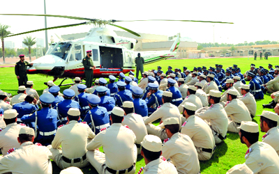 نظمت إدارة جناح الجو في شرطة أبوظبي، برنامجاً تدريبياً «عملياً»، حول كيفية التعامل مع طائرة الإسعاف الجوي العمودية أثناء الحوادث الجسيمة، في مقر كلية الشرطة في أبوظبي، استكمالاً للبرنامج الذي قدمته «نظرياً»، أخيراً لدفعات كلية الشرطة.