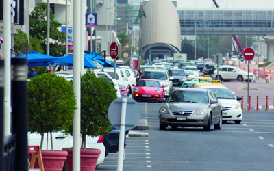 يشهد طريق الخدمة الذي يمرّ من شارع الشيخ زايد، من أمام فندق كراون بلازا، ازدحاماً مرورياً مستمراً، نتيجة ضيق الطريق واستغلال سائقين جوانب الشارع، ومنتصفه، لإيقاف مركباتهم بسبب عدم وجود مواقف شاغرة.