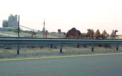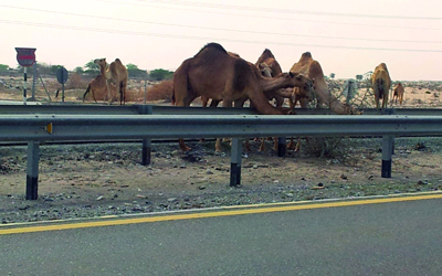 جمال سائبة على طريق شارع الاتحاد، الذي يربط بين إمارتي رأس الخيمة وأم القيوين، معيقة حركة المركبات.