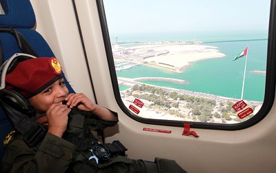 الطفل عبدالله محمد المحروقي، قام بجولة في مروحية تابعة لجناح جو شرطة أبوظبي. وام
