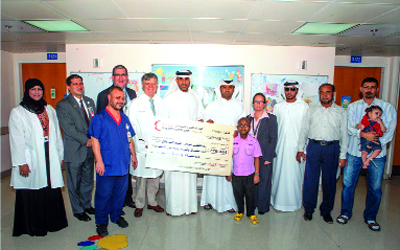 تسلّم مستشفى توام شيكاً نقدياً بقيمة 279 ألف درهم من هيئة الهلال الأحمر الإماراتي، لدعم مجالات البحث لعلاجات أمراض السرطان، وتطوير الرعاية الصحية للأطفال في الدولة، إذ تم جمع التبرعات خلال فعالية مسيرة «المشي من أجل الحياة»، التي نظمها الهلال الأحمر بالتعاون مع مستشفى توام.