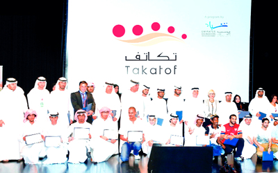 نظم برنامج «تكاتف» للتطوع الاجتماعي التابع لمؤسسة الإمارات لتنمية الشباب، أول من أمس، وللمرة الثانية على التوالي فعالية كبيرة لتكريم وتشجيع المتطوعين المتميزين في البرنامج ، خلال النصف الأول من العام الجاري. حضر حفل تشجيع وتكريم المتطوعين، الذي عقد في مسرح دبي الاجتماعي ومركز الفنون في مول الإمارات بدبي ما يزيد على 300 متطوع ومتطوعة من الذين شاركوا في عدد من المشروعات والأنشطة التطوعية المختلفة التي نظمها البرنامج خلال العام الجاري.