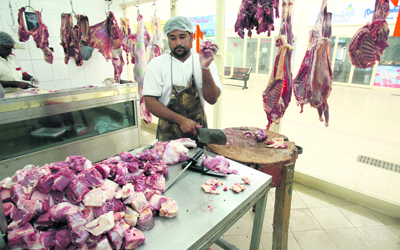 أسعار اللحوم المحلية والباكستانية وصلت إلى 32 درهماً للكيلوغرام مقارنة بـ 25 قبل 5 أيام. تصوير: أسامة أبوغانم