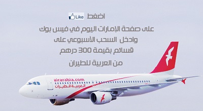 تقدم "الإمارات اليوم" فرصة الفوز بقسائم بقيمة 300 درهم مقدمة من "العربية للطيران".