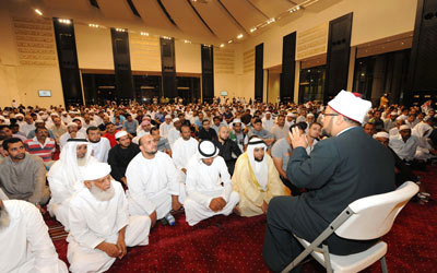 الأبناء، وأثر ذلك في صلاح المجتمع، وتطرقوا في 40 درساً إلى موضوعات أخرى منها ثوابت العبادة من صلاة وصوم وزكاة وغيرها، كما ألقوا عدداً من المحاضرات عقب صلاة التراويح حول فضل عبادة الصوم، أكدوا خلالها أن الصوم ركن من أركان الإسلام وهو عبادة ذات بعد أخلاقي واجتماعي وحضاري، وألقوا أيضاً محاضرات عقب صلاتي الجمعة والعصر، دارت حول فضل قراءة القرآن الكريم في رمضان، باعتباره الشهر الذي نزل فيه جبريل عليه السلام على رسول الله صلى الله عليه وسلم، وهو يتعبد في غار حراء ليلة الـ27 من شهر رمضان، وجاءت المحاضرات شاملة لمستجدات العصر.